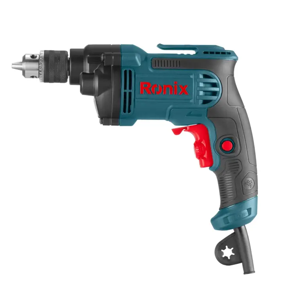 رونیکس در طراحی این مدل به ایمنی کاربر توجه ویژهای داشته است. کابل برق با روکش مقاوم، کلید ضد غبار و طراحی بدنه مطابق با استانداردهای بینالمللی، از ویژگیهای ایمنی این دستگاه هستند. علاوه بر این، وزن کم (حدود 1.75 کیلوگرم) باعث میشود دریل برای کارهای طولانیمدت خستهکننده نباشد.